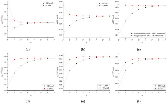 (5) Due to the limited computing storage space of ABAQUS, implementing the fractional derivative viscoelastic model in a finite element analysis requires that the stress and strain data generated during calculations should be at most 2 GB. This limitation imposes constraints on the model’s size and the number of incremental steps. Consequently, implementing a multi-grid, multi-incremental step fractional derivative viscoelastic finite element model becomes challenging within this framework. However, future computer computing power advancements and commercial finite element software updates are expected to facilitate such implementations.