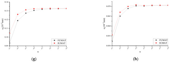 For FUMAT, when α = 1, the calculation results are mutually verified with IUMAT. Taking uz at t = T/4 as an example, the results are shown in Figure 11.