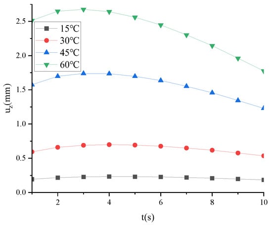 The uz of FTS under different temperatures changes with time, as shown in Figure 9.