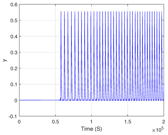 Equation (4) is modified by adding a new term (secret information), which is injected into the third derivative rather than in order to enhance the safety of the communication system. The model of the transmitter system can be expressed as follows: