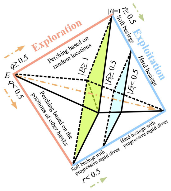 - Heidari, A.A.; Mirjalili, S.; Faris, H.; Aljarah, I.; Mafarja, M.; Chen, H. Harris hawks optimization: Algorithm and applications. Future Gener. Comput. Syst. 2019, 97, 849–872. [Google Scholar] [CrossRef]