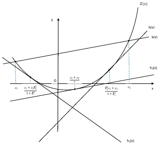 From the given assumption, is a differentiable convex mapping on , so there exists a tangent line for point and the equation of tangent line is given as: