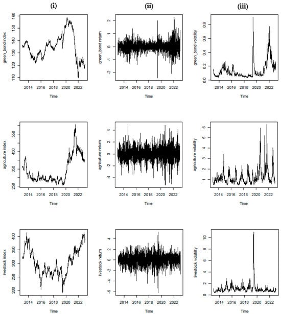 The data graphs of (i) level, (ii) return, and (iii) volatility series (1 November 2013–24 November 2023).