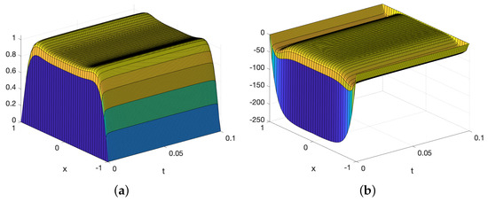 As for the spatial operator, we use the standard the second-order central finite difference for approximation of the spatial derivative and denote and as the approximations for the state variable and adjoint variable , respectively. Therefore, using (40), we obtain the following finite difference scheme for the state equation in the optimality system (39):