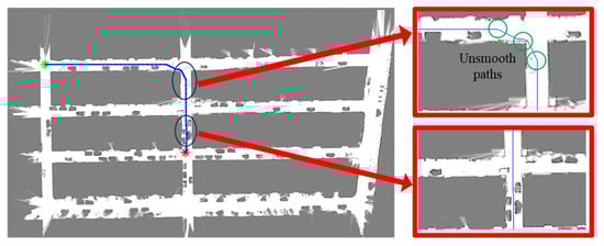 - Song, B.; Wang, Z.; Zou, L.; Xu, L.; Alsaadi, F.E. A new approach to smooth global path planning of mobile robots with kinematic constraints. Int. J. Mach. Learn. Cybern. 2019, 10, 107–119. [Google Scholar] [CrossRef]