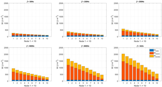 The next step consists of the computation of the local hysteresis Whysti (Equation (23)) and excess losses Wexci (Equation (24)). Then, starting from node 1, the local classic losses Wclasi are calculated from the difference between Wtot and a virtual Wtot N=2–10 that would consider only nodes 2 to 10 for the average induction and H1 for the excitation field. The difference between Wtot and Wtot N=2–10 corresponds to Wtot1, the total loss at node 1; Wclas1 is obtained by subtracting Whyst1 and Wexc1: