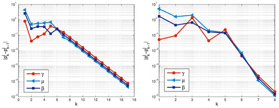 We consider two choices of the initial guess and and examine the performance of Algorithms 1 and 2.