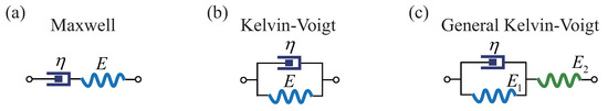 Some typical viscoelastic models. (a) The Maxwell model. (b) The Kelvin–Voigt model. (c) The General Kelvin–Voigt (GKV) model.