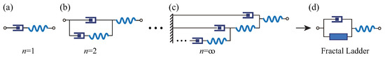 The basic unit of the fractal ladder structure is the Maxwell element, which consists of a spring and a dashpot connected as shown in Figure 5. Due to the entire topology presenting a ladder-like configuration, when the number of structural levels approaches infinity, a fractal topology is formed; hence, the term ’fractal ladder’ is used. The fractal ladder is not a traditional geometric fractal exhibiting self-similarity but rather a self-similar physical fractal composed of identical elements.