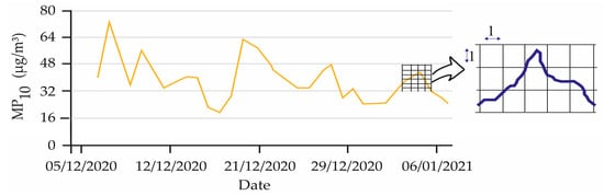 This numerical calculation is performed with software [] that is applied to each TS (both pollutants and meteorological variables), without missing data. The chaotic analysis [,,,] includes the iterated function systems (IFS) fragmentation test. Symbolic dynamics allow one to calculate the Lempel–Ziv complexity (LZ > 0) referred to white noise.