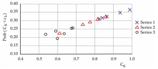 This research uses the CK parameter, whose behavior was examined in six measurement stations, located at different heights with respect to the sea level, in three periods (2010–2013, 2017–2020, and 2019–2022) of 3.25 years each [,,,,,,], in the geographic basin of Santiago de Chile. The presence of confinements due to the SARS-CoV-2 pandemic, in period of 2020–early 2022, with the reduction in labor in Santiago, Chile, was an occasion to analyze CK due to the probable variations in urban meteorology and pollutants []. The effect of the polluting system on the urban meteorological system is checked by calculating the entropies [,] in the time series. The series are localized and contain a history that includes the seasons of the year (autumn, winter, spring, and summer), with droughts, heat waves, heavy and unusual rains, geographical aspects, human activity, etc. The measurements carried out have two widely separated periods (2010–2013 and 2017–2020) and two close periods with partly overlapping data (2017–2020 and 2019–2022, last measurement). In the construction of CK, measurements from two other countries (Mexico and Ecuador) were also used in order to investigate its sensitivity in different contexts of human activity and geographical morphologies, such as mountains and coasts []. The behavior of CK in the geographic basin of Mexico City is similar to that in Santiago de Chile (less than 1), changing (greater than 1) in coastal locations in Chile and in mountain locations in Chile and Ecuador []. Santiago de Chile matters as it concentrates 42% of the country’s population. In Chile, according to the measurements carried out, CK declined from 2010 to the present. This gives a vision of atmospheric deterioration, with strong variations close to the ground, due to human activity. The characteristics of CK are compatible with a Kolmogorov cascade-type behavior: high turbulence in the vicinity of the ground which attenuates with height [,]. The roughness of the Santiago de Chile basin makes it possible to place instruments for measuring urban meteorology and pollutants at different levels, showing that the entropic interaction between them, according to CK, changes over time [].