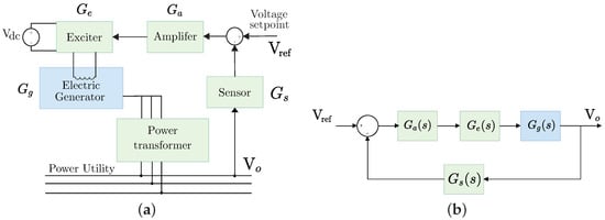 A basic AVR system consists of four components: amplifier, exciter, generator, and sensor, as shown in Figure 1a.