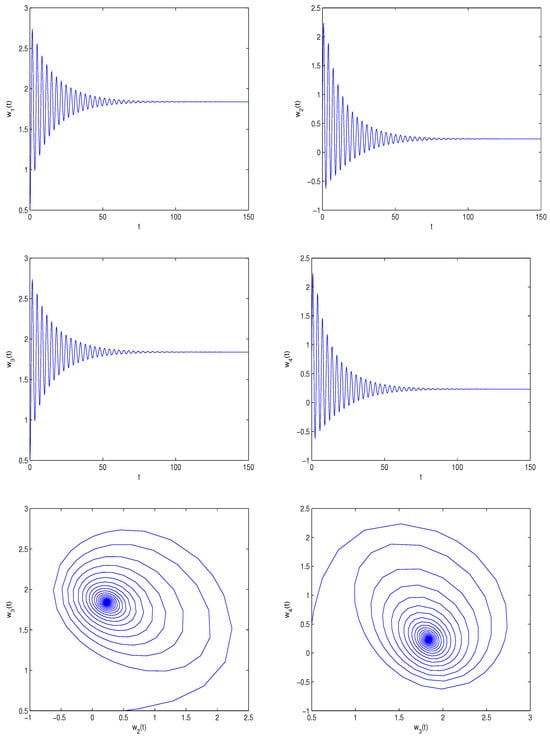 In the simulation, since , we can choose the arbitrary q, which falls into the range of . In this section, we choose . Of course, we can choose . For this case, we can also carry out the numerical simulations for this value for . Here, we omit it. But this does not affect the verification of Theorem 1.