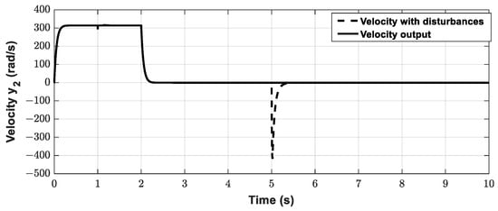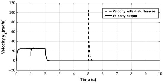Figure 14. The velocity responses of case 2 with and without disturbances.