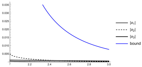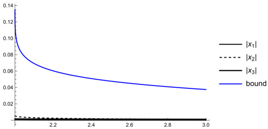 Let . Again, according to Lemma 3 with , , and , the solution to (26) is given by