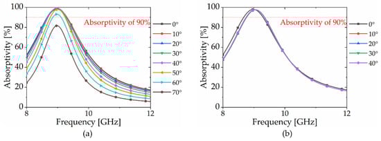 Simulated absorptivity according to a different (a) incident angle and (b) polarization angle.