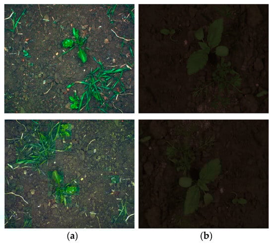 Before the significant advancements in deep learning, features were often manually engineered, referred to as manual or handcrafted features, as they were developed progressively. In [], a random forest classifier (RFC) is used to handle the overlap of together-grown different crops and weed plants. A Markov random field was also applied to smooth the sparse pixels. Another study by Lottes et al. [] used the same RFC for vegetation detection using local and object-based features. Lottes et al. [] used unmanned aerial vehicles (UAVs) and various robots to monitor weeds and crops. They implemented and evaluated plant-tailored feature extraction. Many systems rely on these techniques, primarily because they require fewer computations and have shorter execution times.