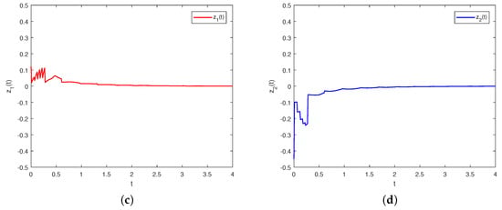 Figure 1c,d, the two error curves of different dimensions gradually approach zero, indicating the effectiveness of the control scheme utilized in this study. To further observe the effect of the feedback control intensity