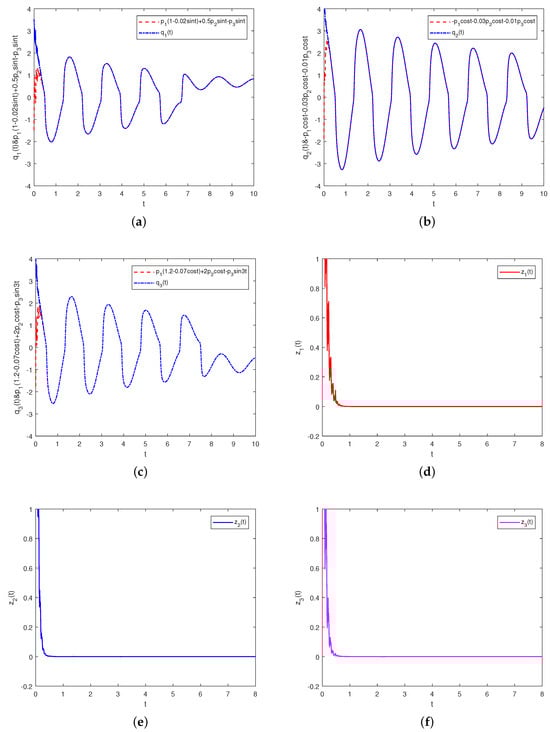 Figure 3d,f, three colored error curves of different dimensions gradually approach zero, indicating the correctness of the obtained theorem and the effectiveness of the mixed control scheme proposed in this article.