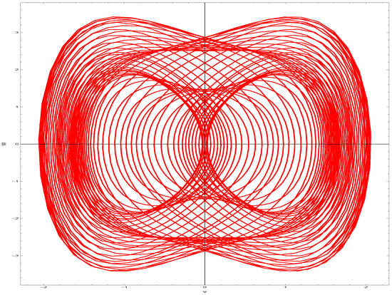 By adding a perturbation, we investigate the system’s possible chaotic tendencies in the analysis that follows, which is based on (19). We analyze the two-dimensional phase diagrams of the attained dynamical system. From (19) we have the following: