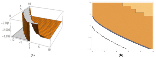Considering the particular values for the parameters , we observed that the equilibrium position represents a saddle point, which is exhibited in Figure 1a.