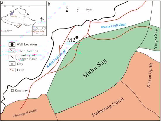 - He, D.; Wu, S.; Zhao, L.; Zheng, M.; Li, D.; Lu, Y. Tectono-Depositional Setting and lts Evolution during Permian to Triassic around Mahu Sag, Junggar Basin. Xinjiang Petrol. Geol. 2018, 39, 35–47, (Chinese in English abstract). [Google Scholar]