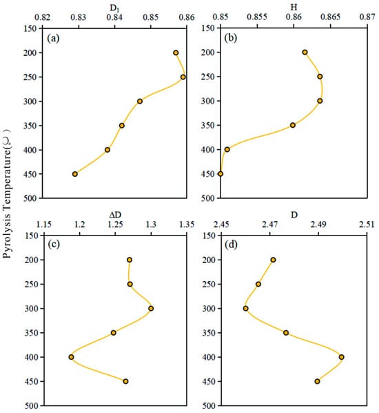 5.1. The Relationship between Pore Structure and Multifractal Dimension during Pyrolysis