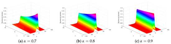 - Han, C.; Wang, Y.L. Numerical solutions of variable-coefficient fractional-in-space KdV equation with the Caputo fractional derivative. Fractal Fract. 2022, 6, 207. [Google Scholar] [CrossRef]