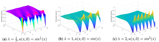 - Majeed, A.; Kamran, M.; Abbas, M.; Bin Misro, M.Y. An efficient numerical scheme for the simulation of time-fractional nonhomogeneous Benjamin-Bona-Mahony-Burger model. Phys. Scr. 2021, 96, 084002. [Google Scholar] [CrossRef]