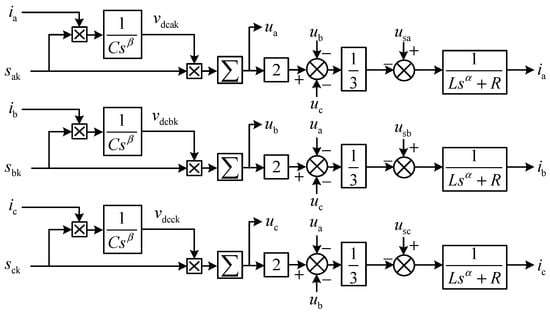 According to (21) and (22), the structure of the low-frequency dynamic model for the FCHM-STATCOM in the three-phase stationary coordinate system (a-b-c) can be obtained, as shown in Figure 5.