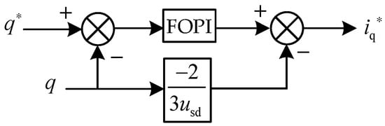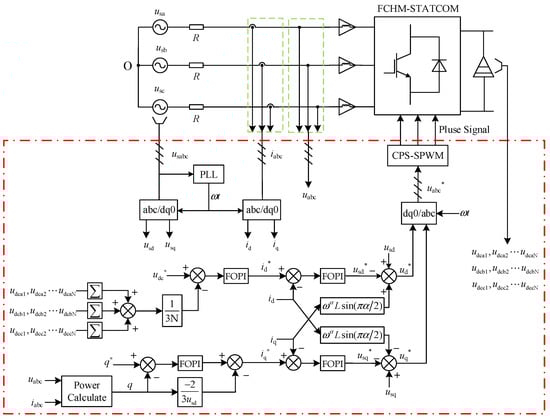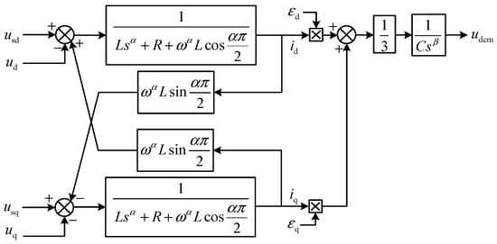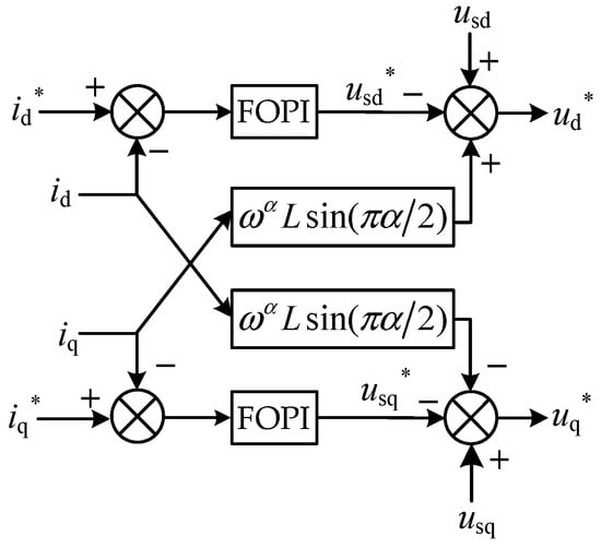 Utilizing an FOPI controller to achieve zero steady-state error tracking for and , the inner current loop of the FCHM-STATCOM controller can be established, as shown in Figure 7: