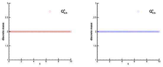 versus time in Figure 7 (right). The computational results in the above figures illustrate that both two FE schemes preserve
