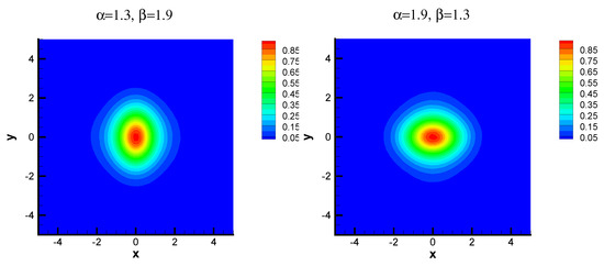 , Figure 6 (left) shows the contour of an approximate wave. We observe that the decay speed of the wave solution along the x-axis is smaller than that of the y-axis. On the contrary, reletting