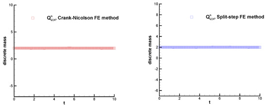Secondly, we show that the mass conservation property is maintained by both Crank–Nicolson FE and split-step FE schemes. Taking