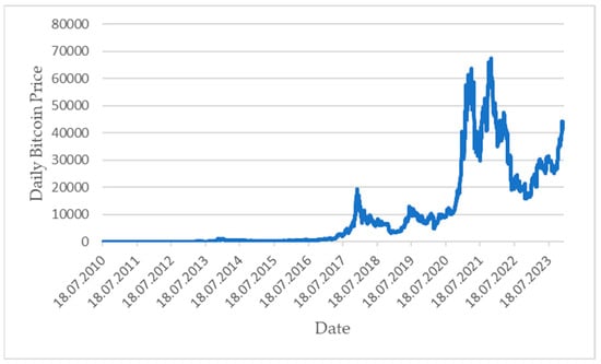 - Bouri, E.; Gil-Alana, L.A.; Gupta, R.; Roubaud, D. Modelling long memory volatility in the bitcoin market: Evidence of persistence and structural breaks. Int. J. Financ. Econ. 2019, 24, 412–426. [Google Scholar] [CrossRef]