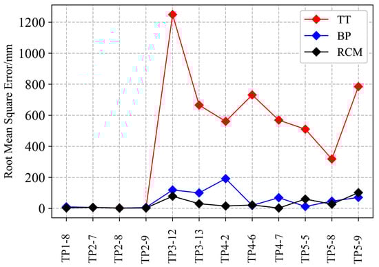 Root mean square error of TT, BP and RCM for each monitoring point.