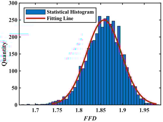 When , the statistical results of calculating values 2000 times, and an approximately normal distribution fitting was used, resulting in a good fitting result.