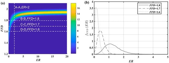 The was used as an example to analyze the FFD’s capability range. The interval was . Consider and as independent continuous random variables. Consider as a two-dimensional continuous random variable with joint probability density . The marginal probability density of the at was plotted based on the FC-Curve and curves in Figure 9b. All marginal probability densities in the ER-FFD coordinate system were plotted to obtain the joint probability density. It was impossible to plot the normalized probability density since the ER can be infinitely large. Therefore, an unnamed joint probability density was used for analysis.