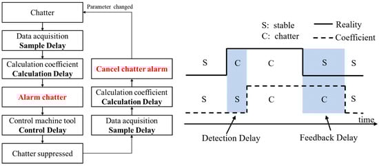 Flowchart of real-time chatter monitoring process and the definition of delays.