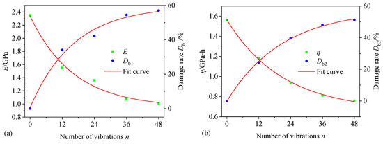 where n is the number of vibrations, Db2(n) is the viscosity coefficient-damage rate of n vibrations, and ηb(0) and ηb(n) are the viscosity coefficients of 0 and n vibrations.