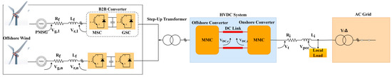 - Paulo, M.S.; Almeida, A.d.O.; de Almeida, P.M.; Barbosa, P.G. Control of an Offshore Wind Farm Considering Grid-Connected and Stand-Alone Operation of a High-Voltage Direct Current Transmission System Based on Multilevel Modular Converters. Energies 2023, 16, 5891. [Google Scholar] [CrossRef]