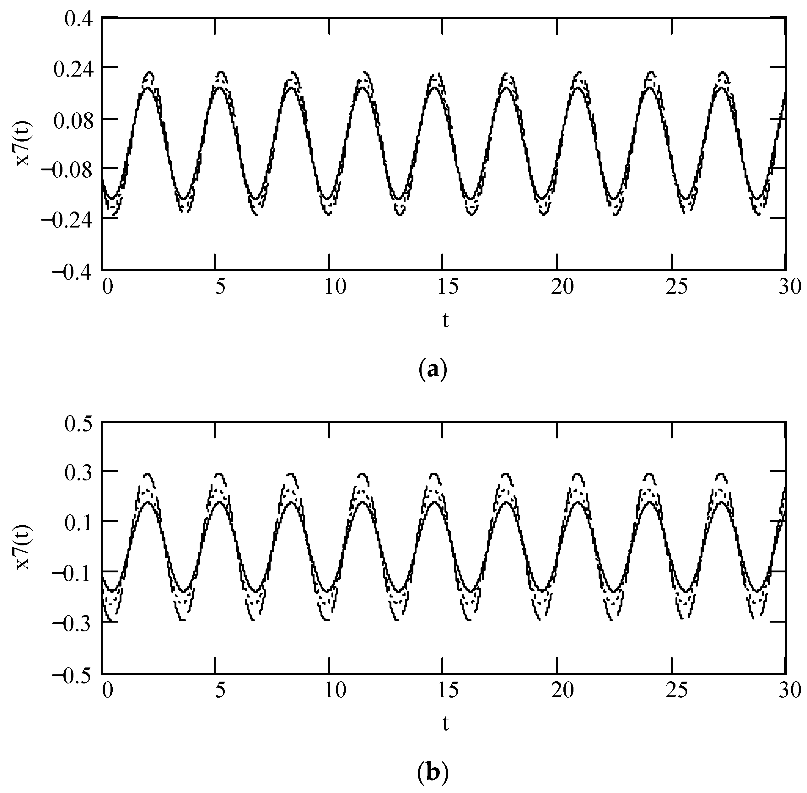 7.3. Stationary Response to Sinusoidal Vibration of Class V Fractional Vibrator