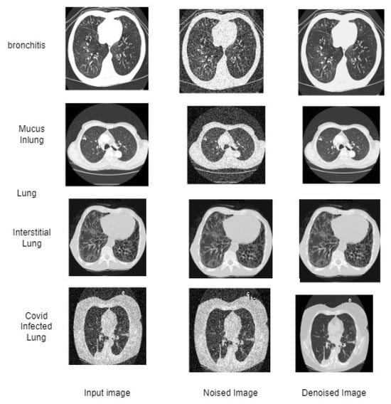 Figure 1 shows the workflow of the proposed model. This is the sample image that we want to process. It is usually a grayscale image that captures the internal structure of an object or body part using CT, MRI, or X-rays. The raw image may have noise or artifacts due to equipment malfunction, the radiation dose, or the image acquisition protocol. A noised image is generated by adding artificial noise to the raw image to simulate such scenarios. Denoising is used to remove the noise from the noisy CT image while preserving the underlying structure. The denoised images are then split into training and testing datasets, usually at a ratio of around 70:30. The training method is used to train the noise removal model. The test method is used to evaluate its performance. We use deep learning models such as VGG16, ResNet50, and Inception as feature extractors in the pictures with the base of the CNN model. Once the denoising algorithm is trained, we then validate its performance on the test set. Validation involves applying the denoising algorithm to the test set and comparing the denoised images with the ground truth (i.e., the original images). This helps us measure the proposed algorithm’s accuracy, precision, recall, and F1 score.