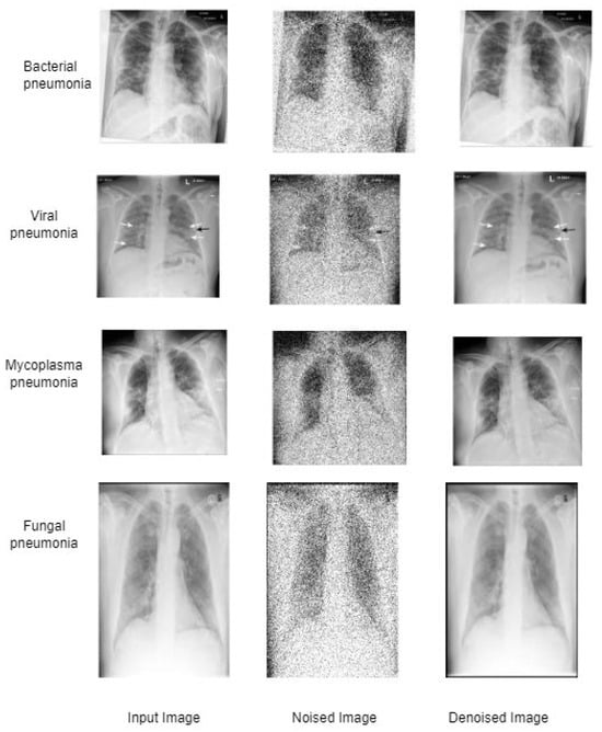 Based on the results presented in Table 4, denoising the images before feeding them into the models generally led to higher precision, recall, and F1 scores and higher accuracy in training and testing. Among the models tested, DenseNet121 with denoising achieved the highest testing accuracy, 86.41%, followed by Inception V3 with denoising at 83.37%. The worst-performing model was VGG16 without denoising, with a testing accuracy of only 72.03%. Based on the results provided, it appears that all the models benefited from denoising. The precision, recall, and F1-score all improved in the denoised models for each class. Regarding the specific models, DenseNet121 performed the best overall, with the highest precision, recall, and F1-score for both classes in the denoised and non-denoised versions. Inception V3 also performed well, with a high precision, recall, and F1-score for both classes in the denoised version. It seems that the performance of the models varied depending on the preprocessing steps and whether denoising was applied. For example, the best-performing model without denoising appears to be DenseNet121 with an F1-score of 0.8935 for class 0 and 0.9385 for class 1. However, with denoising, the best-performing model was Inception V3 with an F1-score of 0.8098 for class 0 and 0.8108 for class 1. On the other hand, VGG16 performed poorly, with very low precision, recall, and F1-score for class 0 in both the denoised and non-denoised versions. ResNet50 had a relatively low recall for class 0 in both versions. Denoising seemed to benefit the image classification models, but the DenseNet121 and Inception V3 model architectures could also significantly impact performance. The running times for the CNN, DenseNet121, VGG16, ResNet50, and Inception V3 models were 133 s, 214 s, 743 s, 169 s, and 109 s, respectively. The models were trained for 10 epochs with a total of 220 iterations.