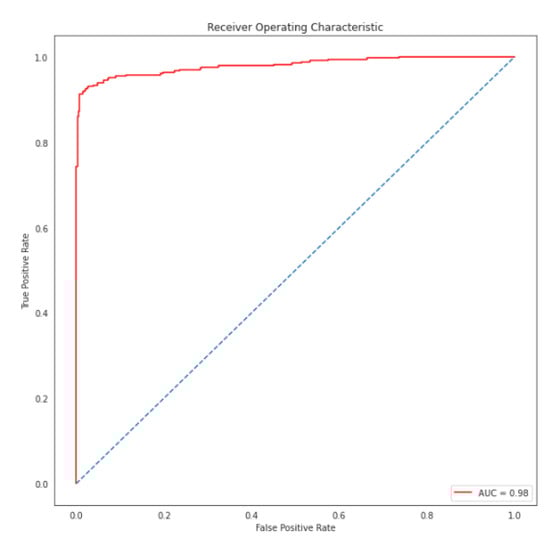 Figure 23 shows the lung CT dataset’s loss and accuracy evolution. Figure 24 shows the ROC curve with a threshold value of 0.05.