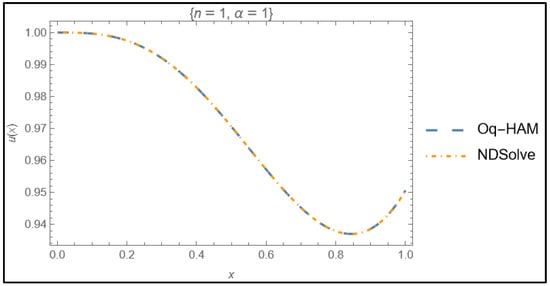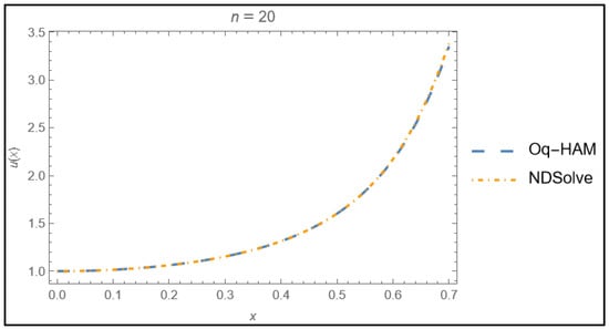 The initial condition will be used as . The approximate solution from q-HAM will be compared to the numerical solution obtained with Mathematica using NDSolve.