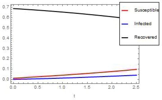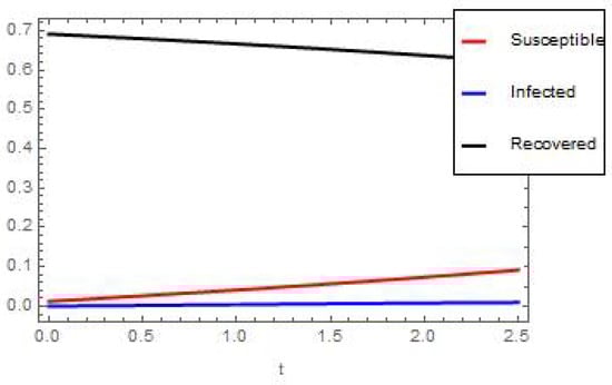 is the diffusion constant of susceptible, infected and recovered classes, respectively. One important thing to be noted is that we have taken the interval [0, 0.25] as the domain for the given SIR model. Here, the initial conditions for
