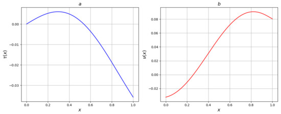 Using the obtained functions and , we can obtain a solution to the problem in domain and , respectively, using Formulas (14) and (42).