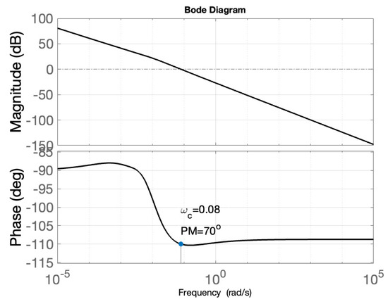 . The Bode diagram of the loop transfer function for the designed controller and the nominal model in (20) is given in Figure 8, clearly showing that the design specifications were met.
