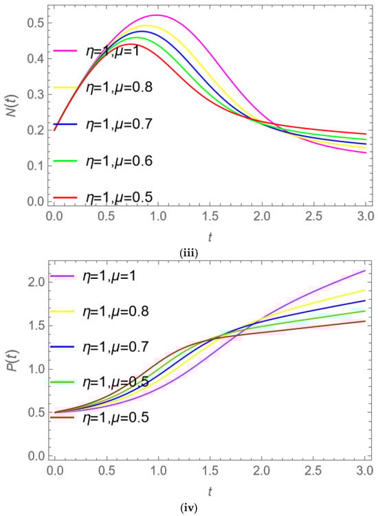 as seen in Figure 3iii and then decreases. In Figure 3ii,iv, as fractional orders (